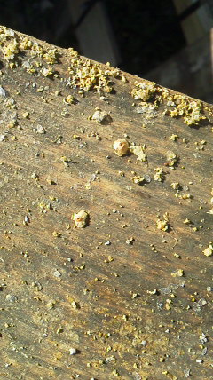 実家のミツバチは菜の花に興味を示さず、白い薄黄色い花粉を持ち帰ってます。梅の花なんでしょうかね^^?