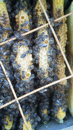 >昨日の続きですが、巣箱ひっくり返してみたら、王台が出来ていました。1箱に大体4個から6個です。