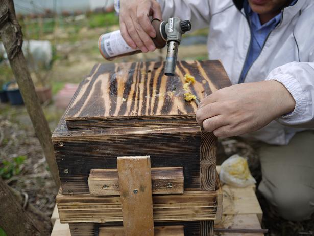 蜜蝋塗り by 奈良すずめ · 2013年4月8日 皆さんのところは分蜂も始まっているようですが、こちらはまだまだです。 今日は蜜蝋塗りを行いました。蜜蝋とは言え、精製してない絞りカスのままです。そのままバーナーで炙ってしまえはOK! 蜂蜜も付いているのでアリンコが来るのか難点ですがね♪ シェアする