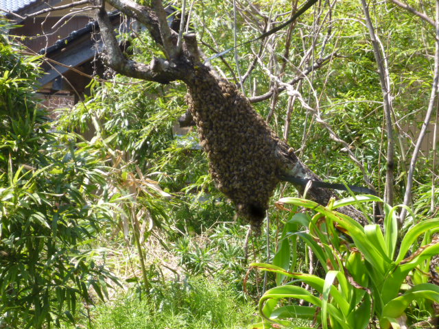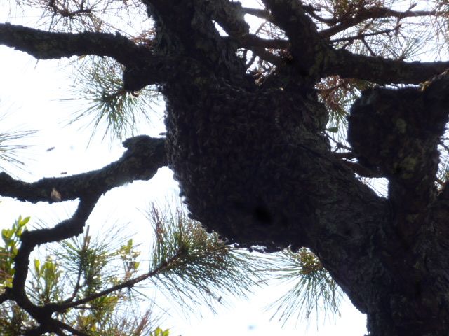 今日の分蜂捕獲1群目は 栗木と思ったのですが