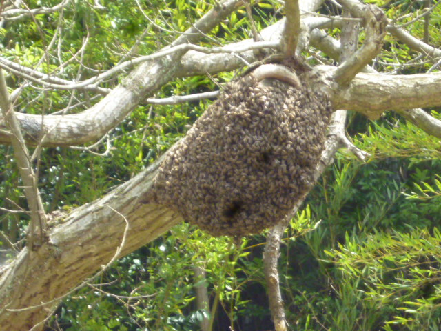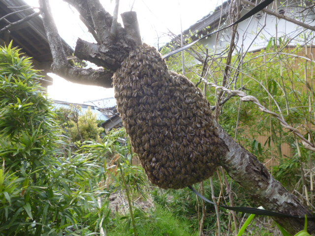 3連チャンの1週間ほどまえに近所の人が蜂の群れを見ているそうです。