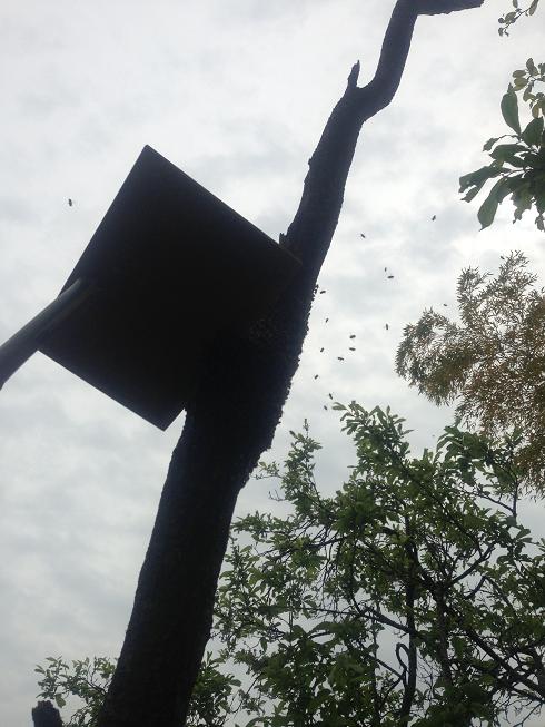 もう一つ、こちらにも分蜂が集まってきています。