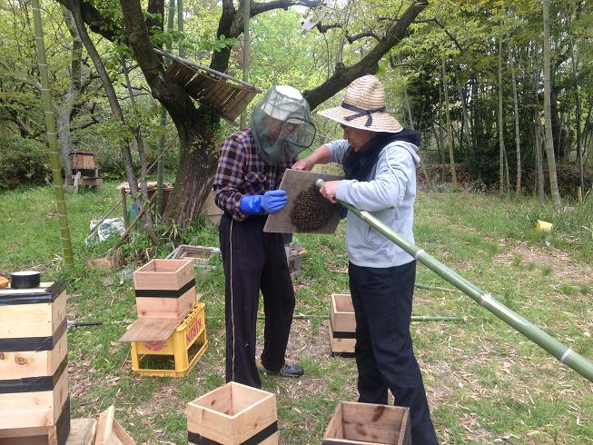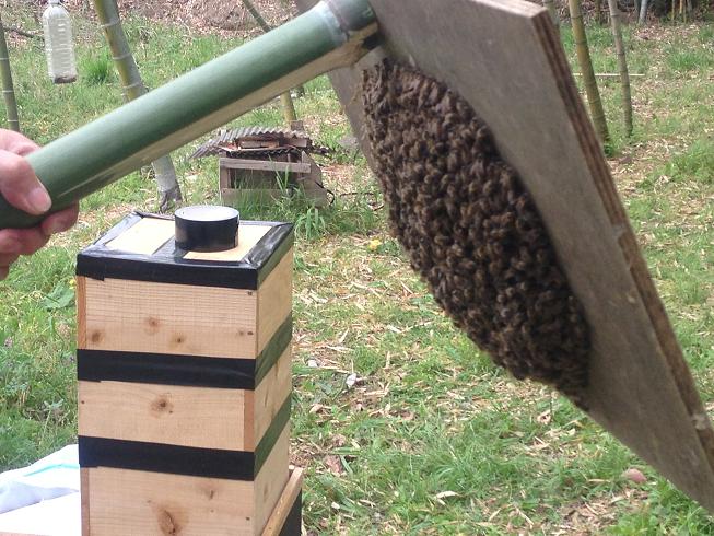 蜂がみんな移動するまで忍耐、忍耐、奈良オフ会の時は集合フェロモン付きでしたが、今回は多少時間多めにかかったのでは?