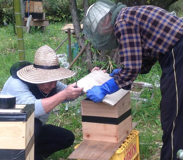 すずめさん、やってますね~~~。分封ざかり、にぎやかになり、末席の私もやっと1群入居あり、どうにか話題に入れそうです。キンリョウヘン、待ち箱入居初めて果たしました!!雨上がりの今日もまだ箱に居てくれています。