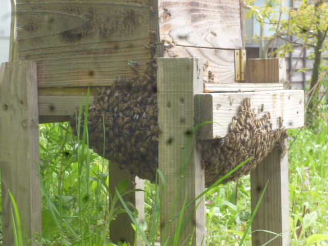 無王の群れは、べたっとして、いつまで経っても落ち着かずにざわ付いた蜂の動きが止まりません。