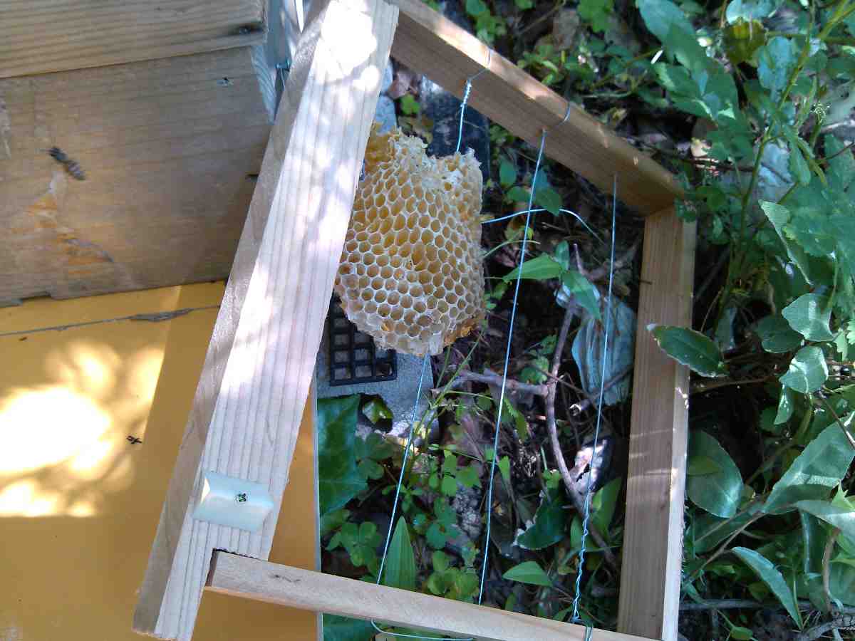 >・・・みつばちの巣は水平から上向きに作られ、蜜がたまりやすくなってるようです