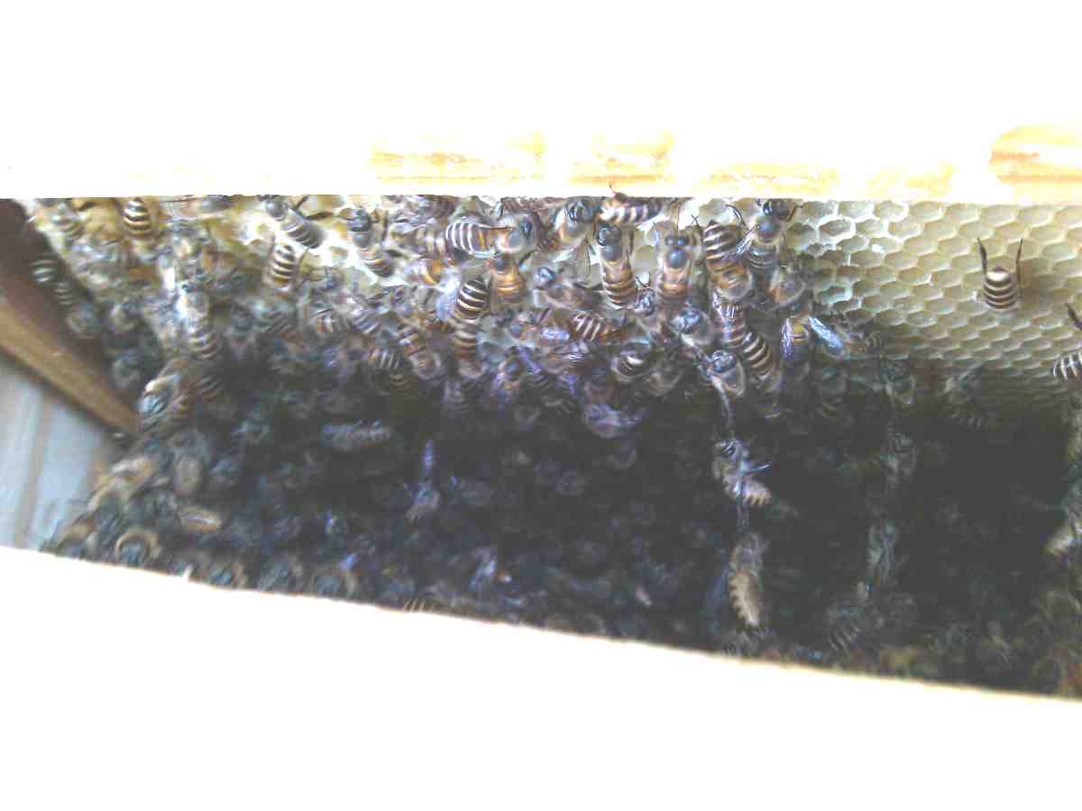 しかし、巣は巣枠上部から下に向けて作っています。