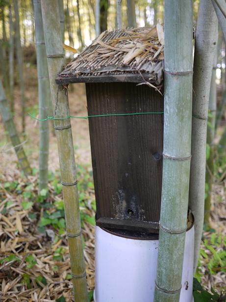>知り合いの竹林に置いた幅18cmの縦長巣箱です。