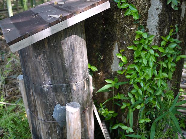 この穴は塞いでおかないと、秋にはスズメバチの餌食ですね。