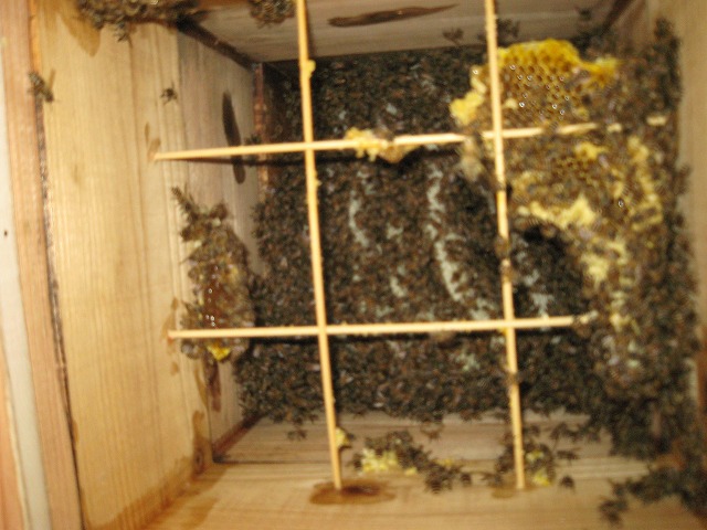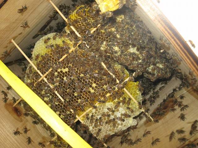 巣落ちしてしまいました。1段2段に巣落ちバーがなかったのがいけなかったのかな。そろそろ暑さ対策しようかな。
