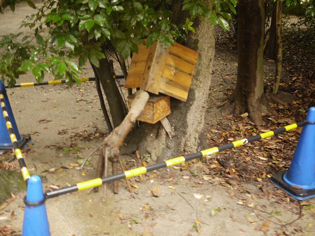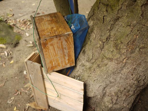 神社の方の了承を得て数箇所に待箱を置かせて頂きましたが、写真は捕り忘れ・・・