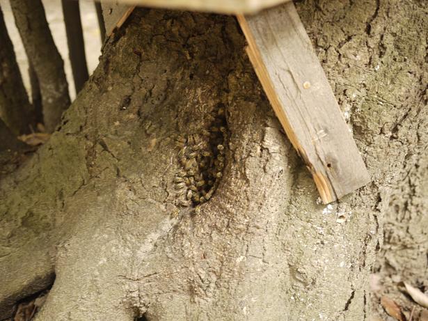 秋にスズメバチに襲われた逃避群は数十m近くの箱に入り、