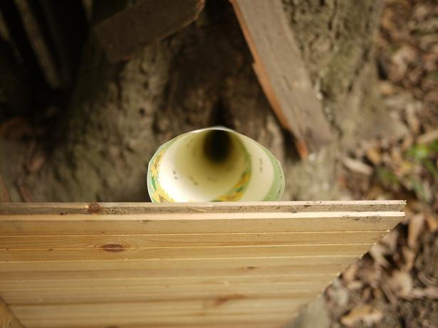 棒を差し込んで中の様子を探りました。