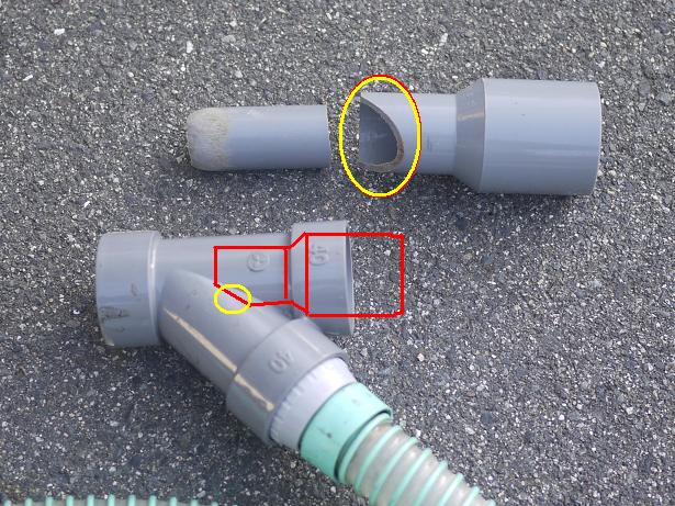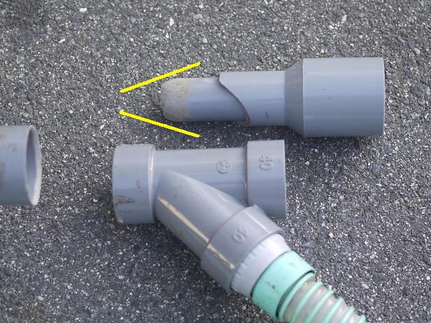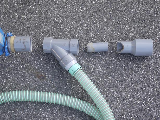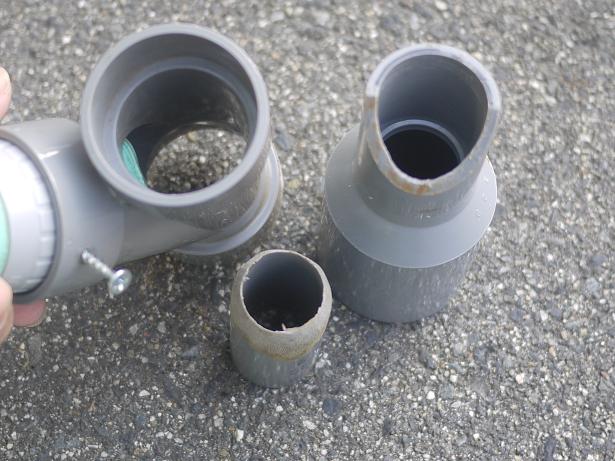 メインの部品は、トの字をした三菱樹脂の塩ビパイプと