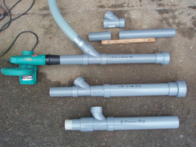 最初、マルイさんが掲載された画像を見てすぐ私も作ってみたのですがブロアに付いているゴムの噴出し口を外して直結したので全然吸引圧がでませんでした。