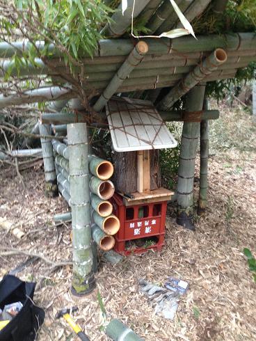 おじゃまします 何とも楽しそうな作業ですね 日よけ、雨よけ 抜群です