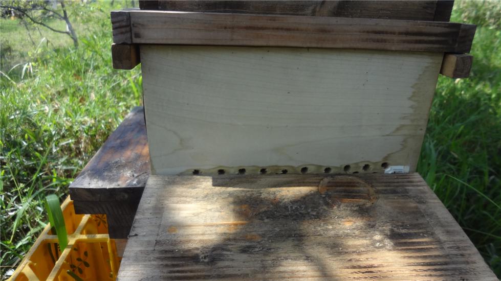 穴は、下より、箱中央か中央より少し上に2~3個空けた方が探索蜂が入りやすいですよ。