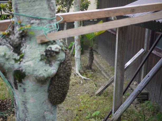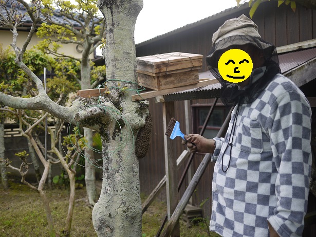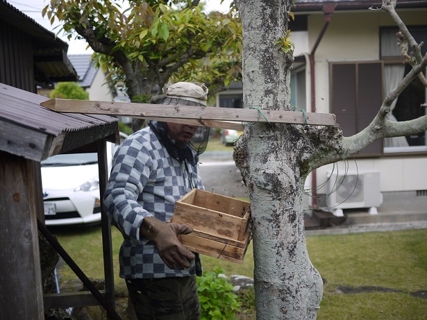 横に残っている蜂は叩いて飛ばせば箱に収まります。