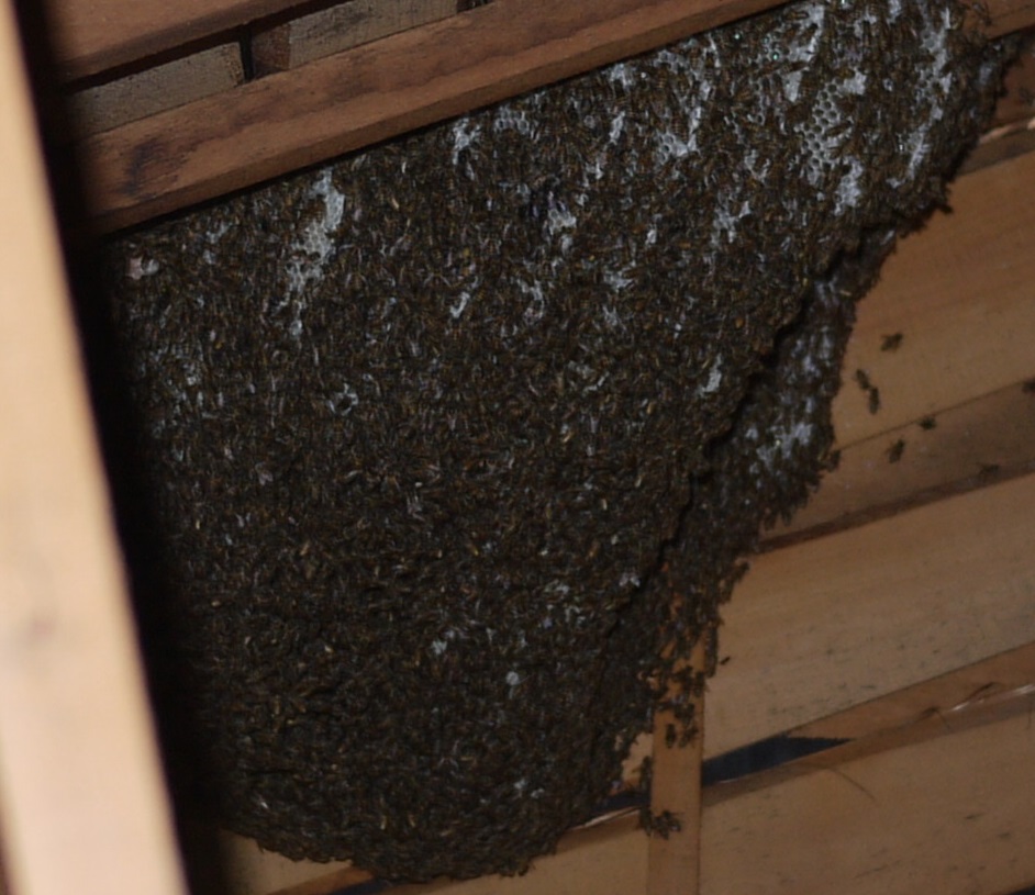 天井からは蜂蜜が垂れてくるとのことです。確かに巣落ちしているのですが・・・