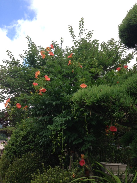 ノウゼンカズラを2本追加で植えて、近くを散歩してると~アカメガシワ(?)ですね。あちこちにたくさん咲いてます^^