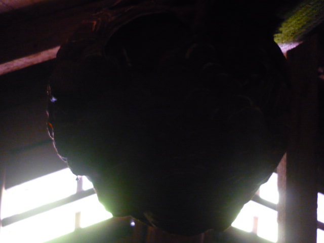 家内の実家にいる蜂群、長男が黄色スズメ蜂と格闘した末の出来事。