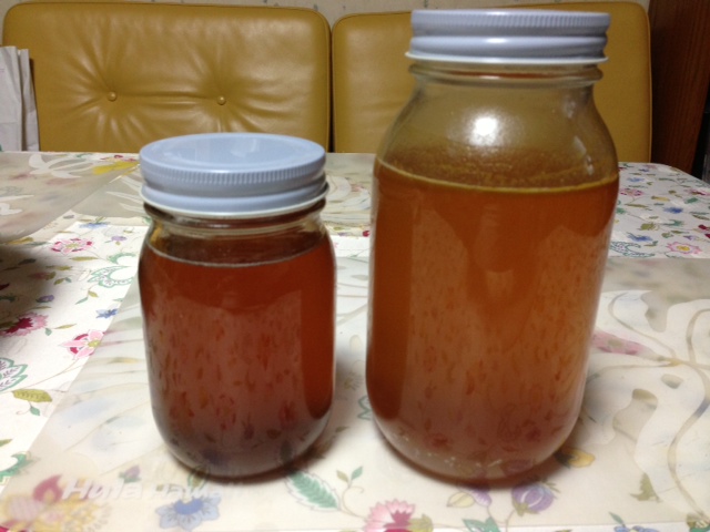 気がついたのがこの1瓶ですが1群から4kgは採れているはずですから他に6瓶は同じように発酵していてもおかしくないですね。ご近所にあげちゃったから既に消費していると思います。