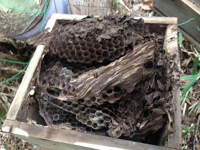 古来からスズメバチを天敵として来た日本ミツバチは、営巣場所を選択する際にその辺もしっかりチェックしていると考えています。