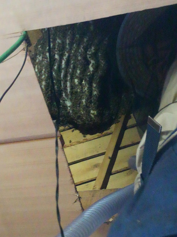 昨年6月10日の作業ですね、この時は一人で作業したので大変でした、蜜まみれの女王捕獲できたので後日残り蜂捕獲することにして終了しました、2日後に残り蜂捕獲して巣箱の前で袋から出すと凶暴になり50mも追いかけられました、その後3か月ほどして熊に襲われどこかえ行ってしまいました。