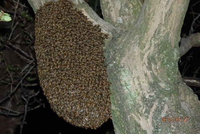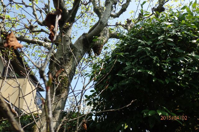 まだだろうと思っていたら、今夕外出から戻ると、2軒先の隣家から庭木に蜂球発生の通報がありました。裏山から来たのか手飼い3群から出たのか分かりませんが、明朝9時から収容作業を行います。