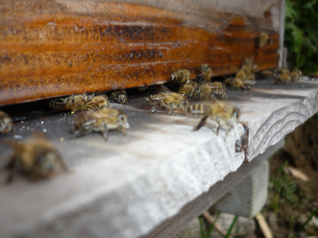 昼に鑑賞用のシンピジュームを外に出すと2時ころ蜂が群がっているので注意していたのですが蜂球もつくらず知らぬまにほったらかし箱に入居していました。