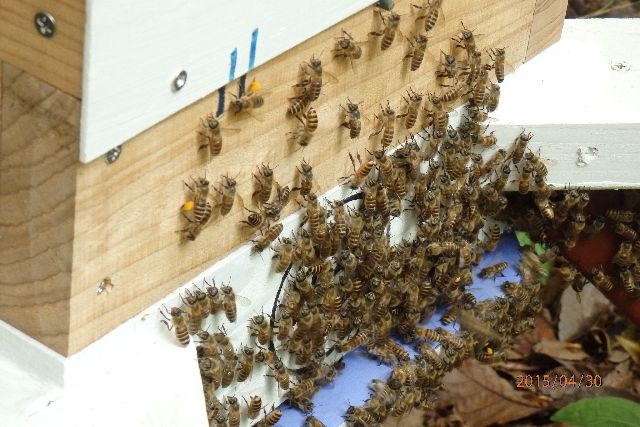 念のため今日巣箱チェックしたところ天井から3段目の巣落ち防止横串のとこまで蜂で埋まっています。2群合同しないとこのボリュームにはならないと思われます。底板、巣門下に蜂の死骸はなく、どちらの女王がその座を守ったのかは不明です。