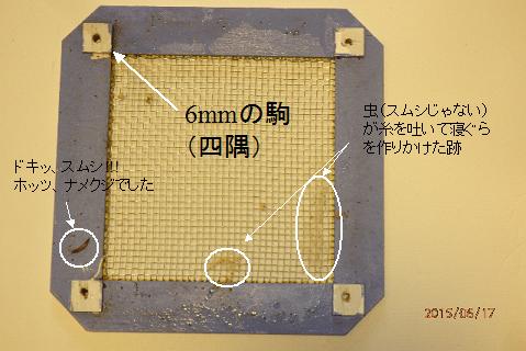 空気抜きの穴はjoeさんへの返事の通りです。簀にする前のバージョンは、穴をたくさん開けたんですが、スムシのさなぎが利用しやがったので簀に切り替えてます。