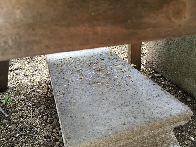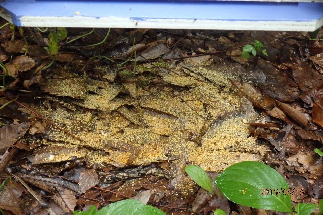 これが小さな幼虫を出すようになると底板の巣門や踊り場が汚れてきます。