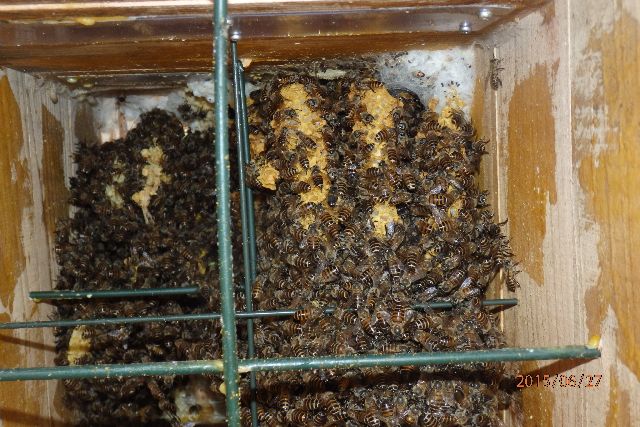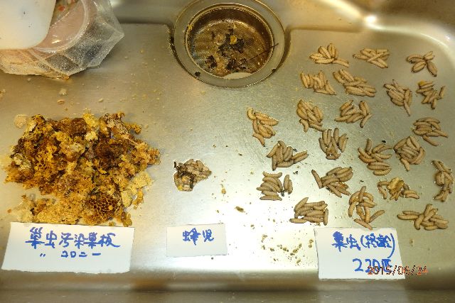 巣箱下部で孵化したスムシが最上部の貯蜜部までそんなに数多く到達するとは考えにくいので、巣箱内部に入り込んだ親蛾が巣箱上部の壁あるいは貯蜜巣板に直接産卵した、または、天板の穴からなだれ込んだという気がします。