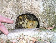 この穴に、素手で巣板を捕れるのはハチフジさん以外見たことがありません。