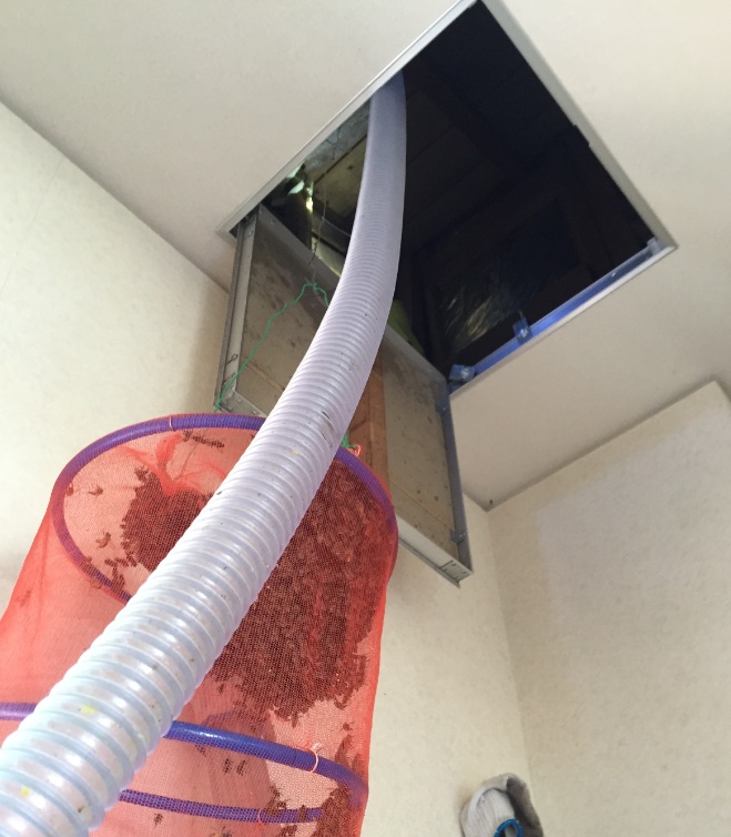 玄関の天井に営巣しています。