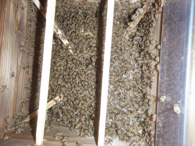 経過を注意しておきます。今のところ、飛べない蜂、腹部膨満した蜂、蜂数減少などは見られません。