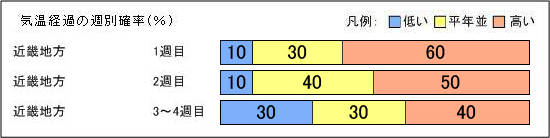 近畿地方の一ヶ月予報では例年に比べ暖かいようです。
