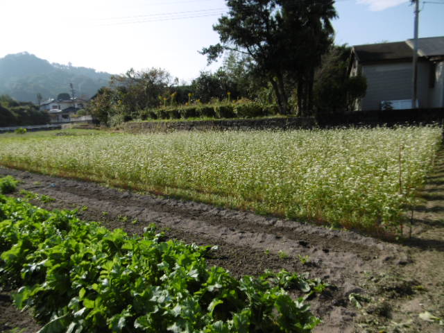 こちらは9月10日に播種したソバが満開になり午前中に日本蜜蜂の羽根音がうるさい位に賑わっています。