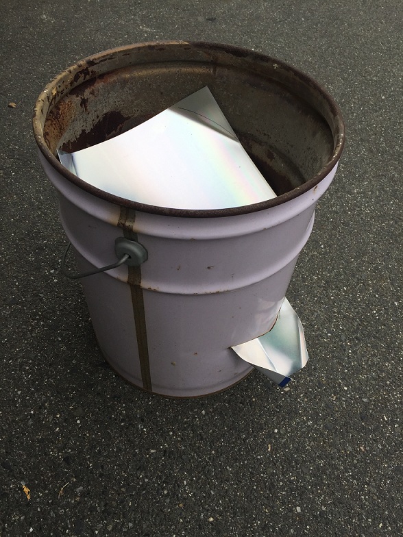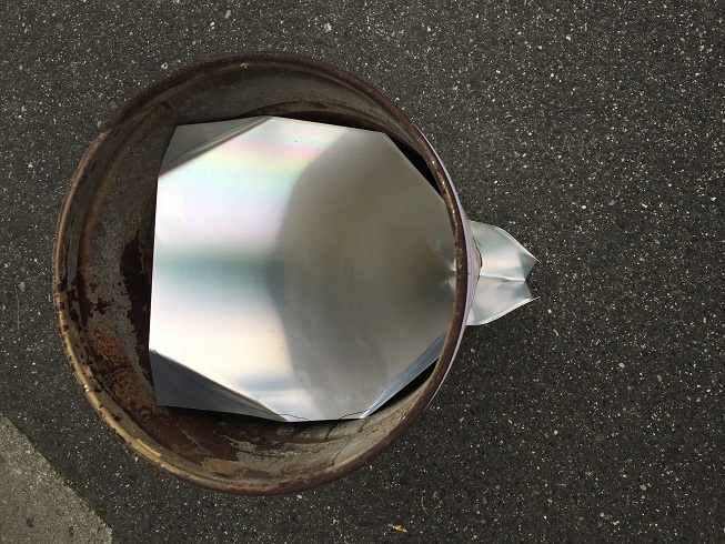 ペール缶に、グラインダーでVの字に穴を開けて、そこにアルミ板を斜めにセットしました。