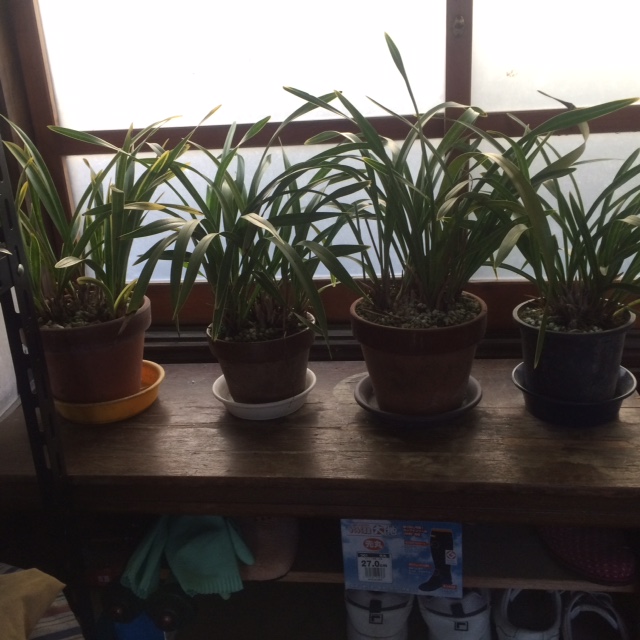 この温水器のある部屋で一ヶ月ならしてから2月にリビングで加温します。花芽のある鉢を捜したのですが少ない・・・