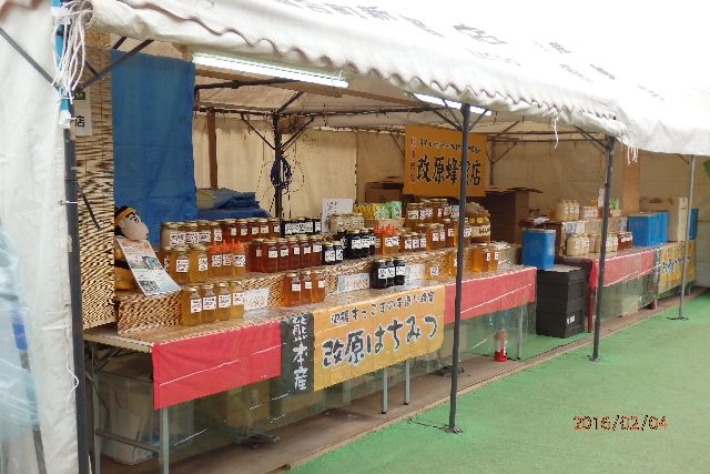 立春を迎え恒例の植木市(養蜂業者さんも出店している)が始まりました。業界ではFlow Hiveをどう見ているのか探りに行きました。3店舗出ていたなかになんと“肥後もっこす”の手作り蜂蜜なるキャッチフレーズを掲げたブースが。2000群以上の洋蜂をかかえこの植木市に40数年出店、店主は県の養蜂組合(?)の青年部役員で世界養蜂会議にも毎年行っている由。肥後もっこすのご縁でこちらで聞き込みをしました。