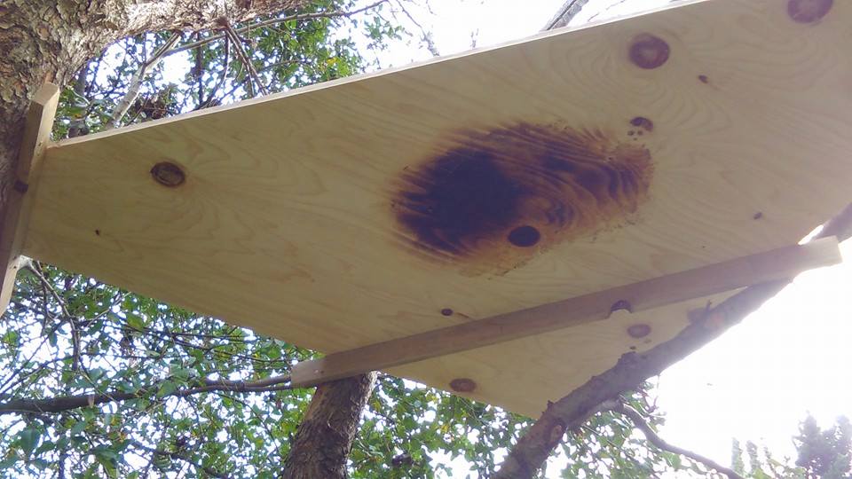 実は、この巨大集合板がある木は、毎年分蜂蜂玉が出来る木です。