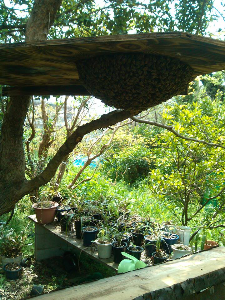 2年前に、200匹ぐらいの小さな分蜂群と、