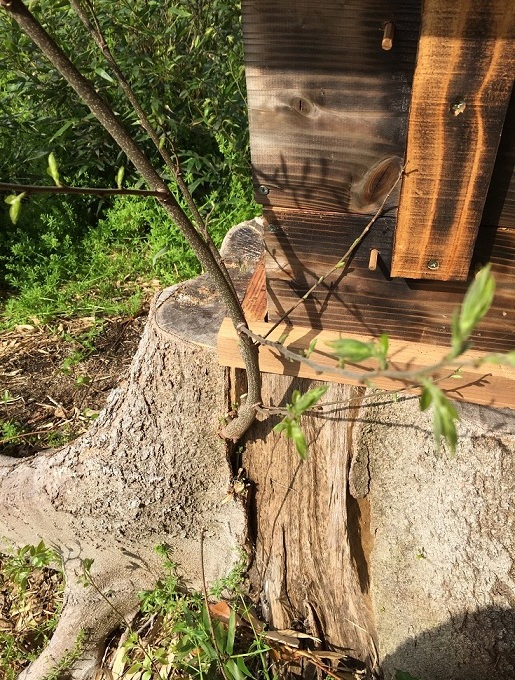 でも薄暗い蜂場がすっかり明るくなりました。夏場の直射日光が木になりますから、この若葉が育って欲しいものです。。