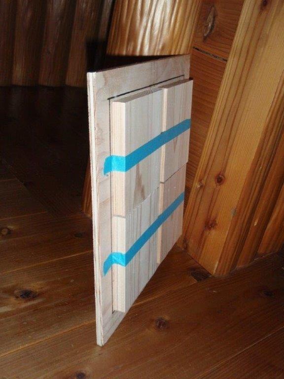 今年、ある人の天板を見る機会があったのですが、その人はコンパネに丸鋸で数本の切込み(溝)を入れてありました。そうすることで、蜂が掴まりやすくなることと蝋付もしやすいということが考えられます。