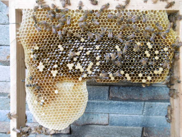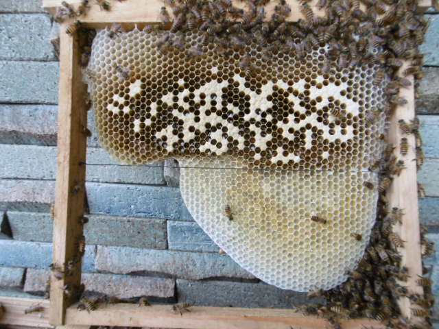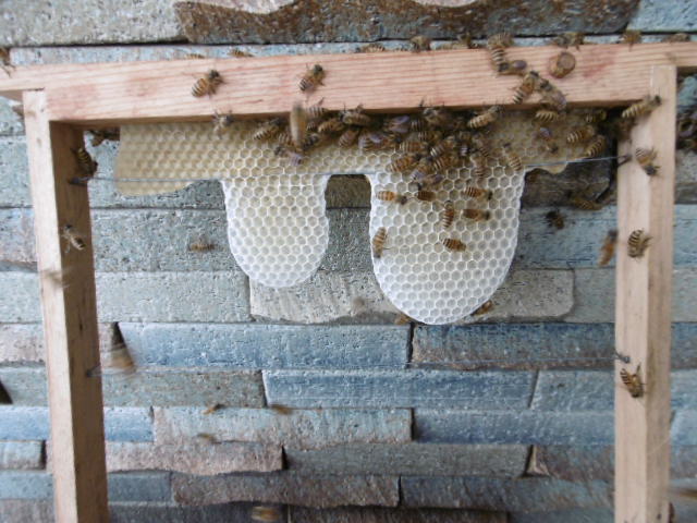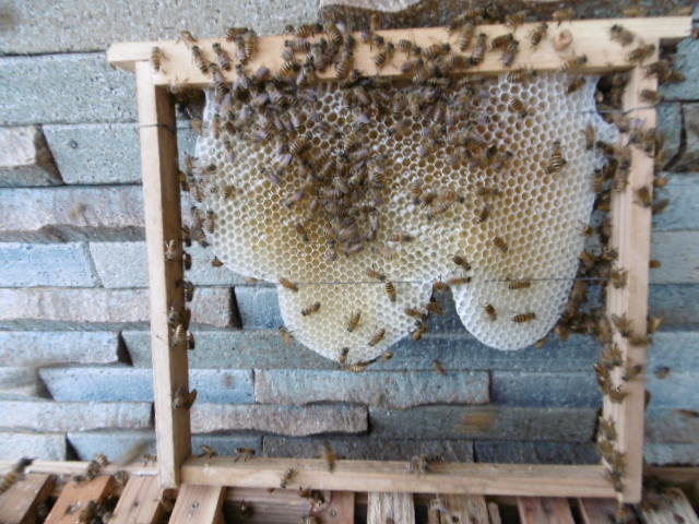 入口より4枠までは綺麗に巣素を作りこれが4枚目を引き上げたものです。