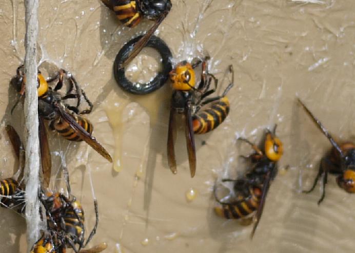 大スズメバチを一匹だけおとりに付けます。