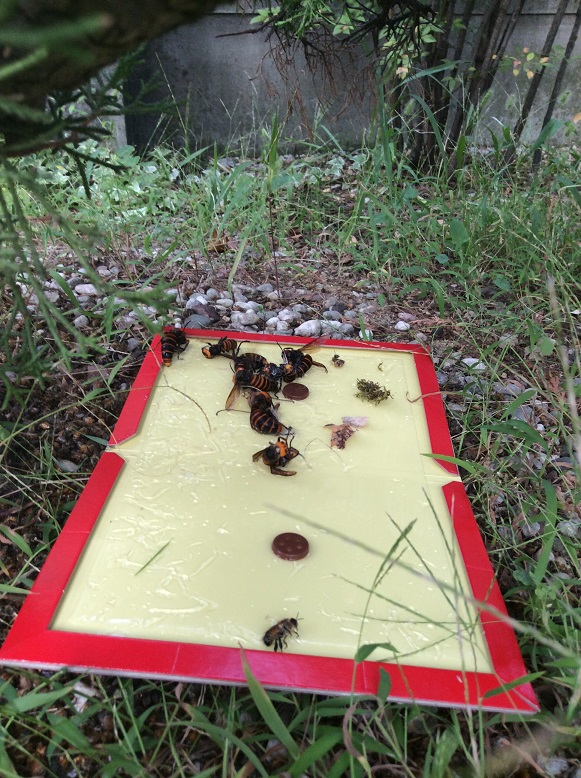 巣箱を攻撃に来た大スズメバチ達はペッタンコの上が、