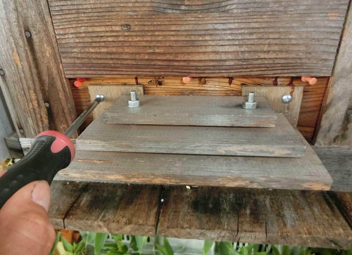 取り付け面に6mmのベニヤ板を付けて、ミツバチは6mmの隙間を利用して上下移動出来ます~(^^)v